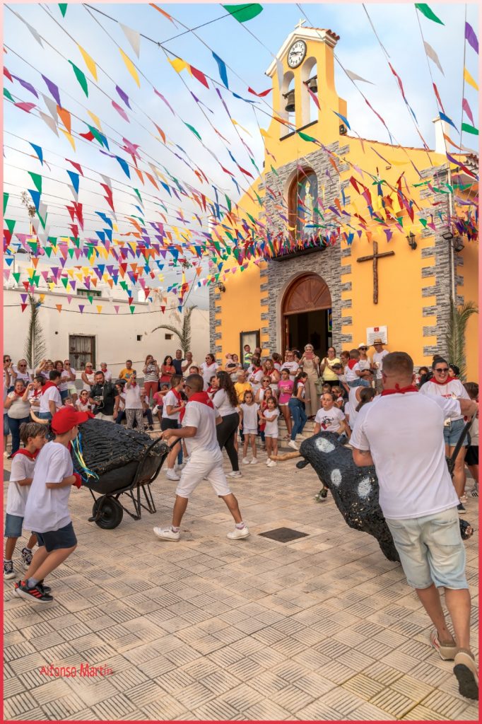 Tradicional recorrido de «el toro y la tora Lola» en la Hoya Ana Díaz por las Fiestas de San Fermín 2023